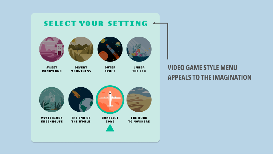 This image accompanied instructions on finding a setting for the learners' story. This helped to spark the imagination. In future, it would be great to animate and develop this more!