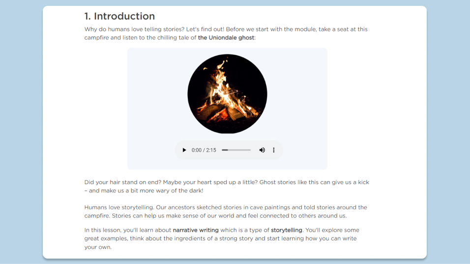 This lesson starts with a bit of fun to hook the learner's attention. Everybody loves a good ghost story!